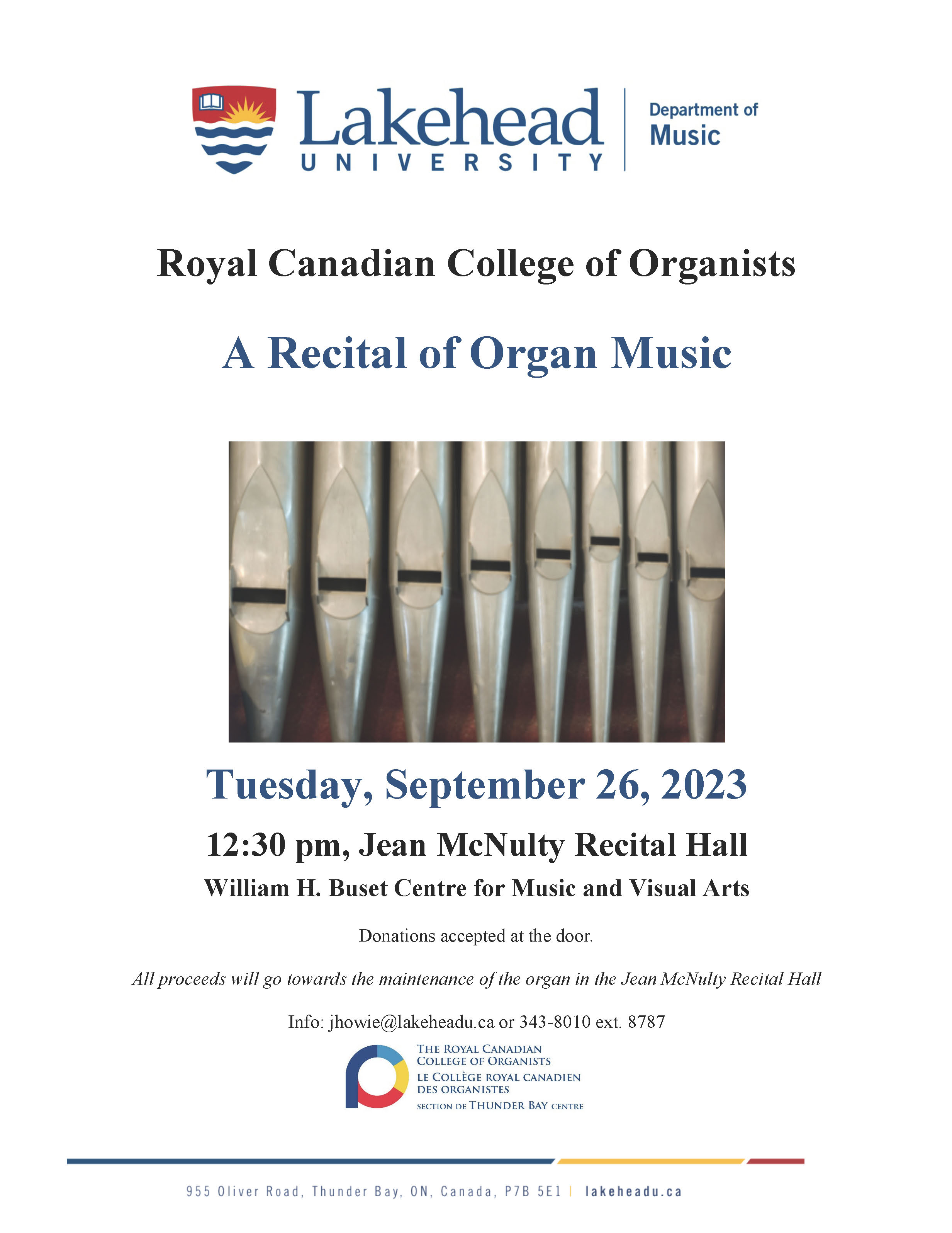 All proceeds will go towards the maintenance of the organ in the Jean McNulty Recital Hall