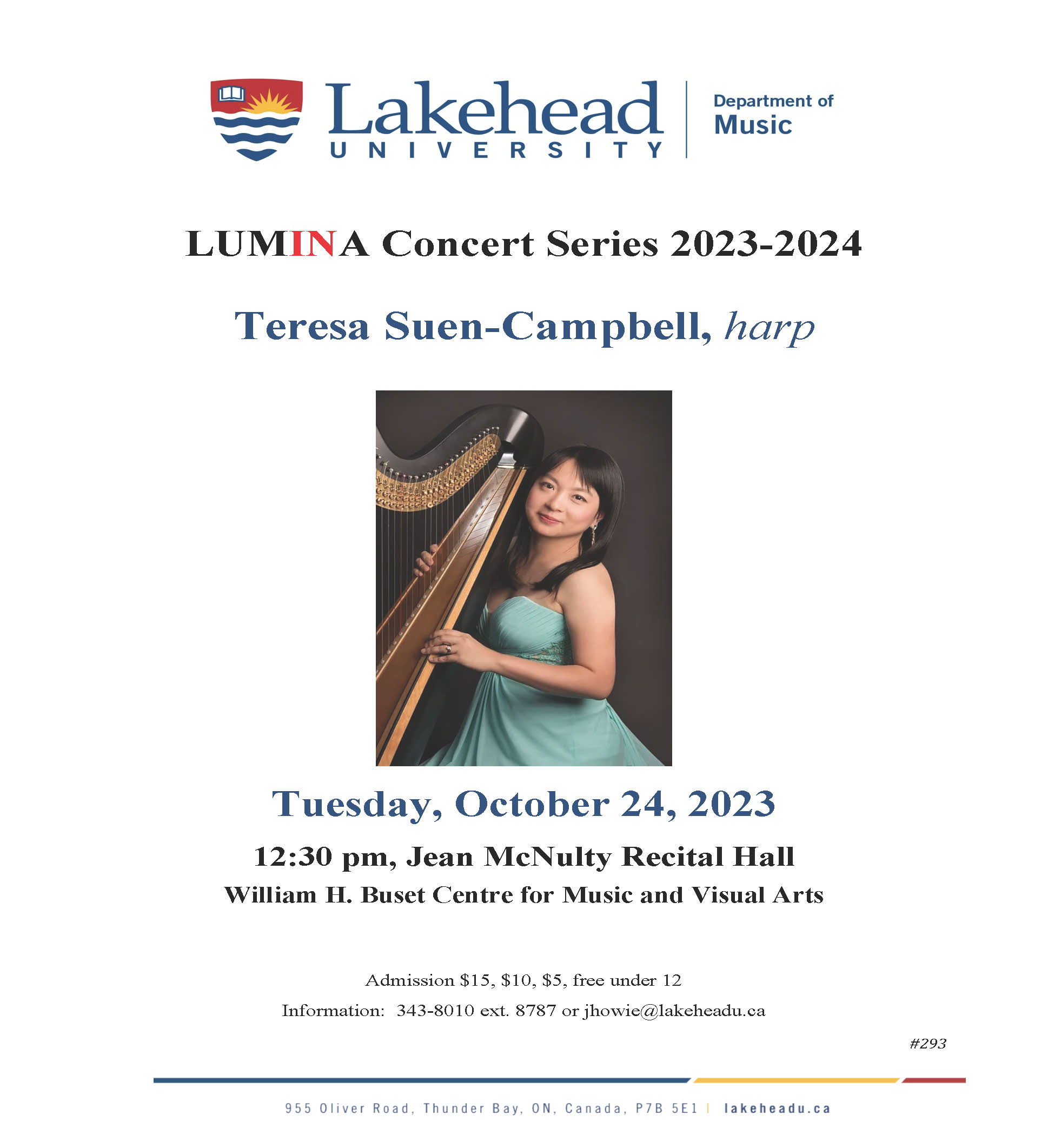 Teresa Suen-Campbell is a highly regarded, internationally- renowned harpist on the faculty of the Music Department of Lakehead University.