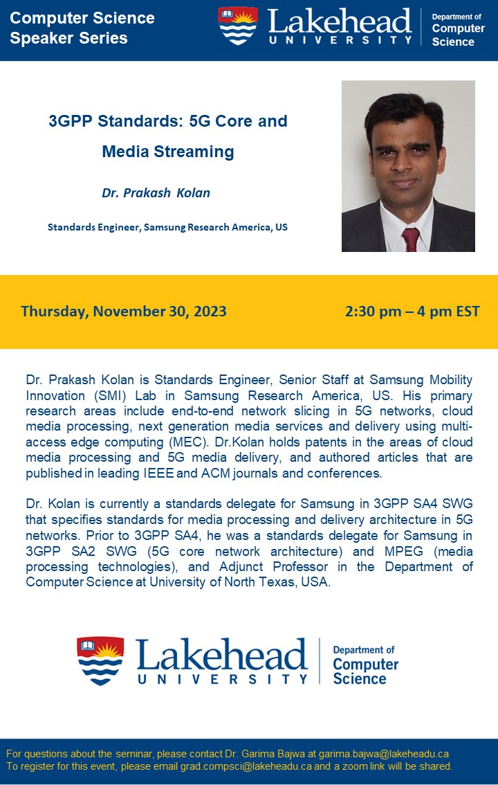 Computer Science Guest Speaker Series - 3GPP Standards: 5G Core and Media Streaming
