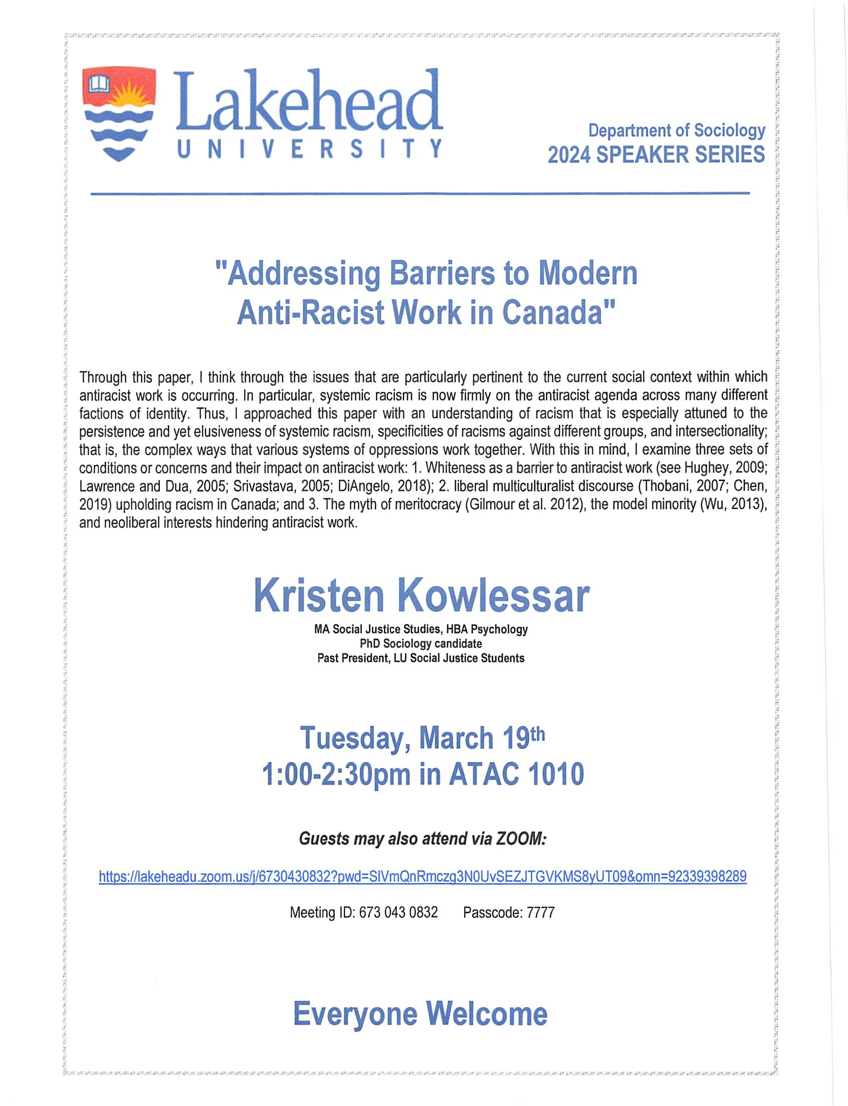 Guests may also attend via ZOOM: https://lakeheadu.zoom.us/j/6730430832?pwd=SlVmQnRmczg3N0UvSEZJTGVKMS8yU...