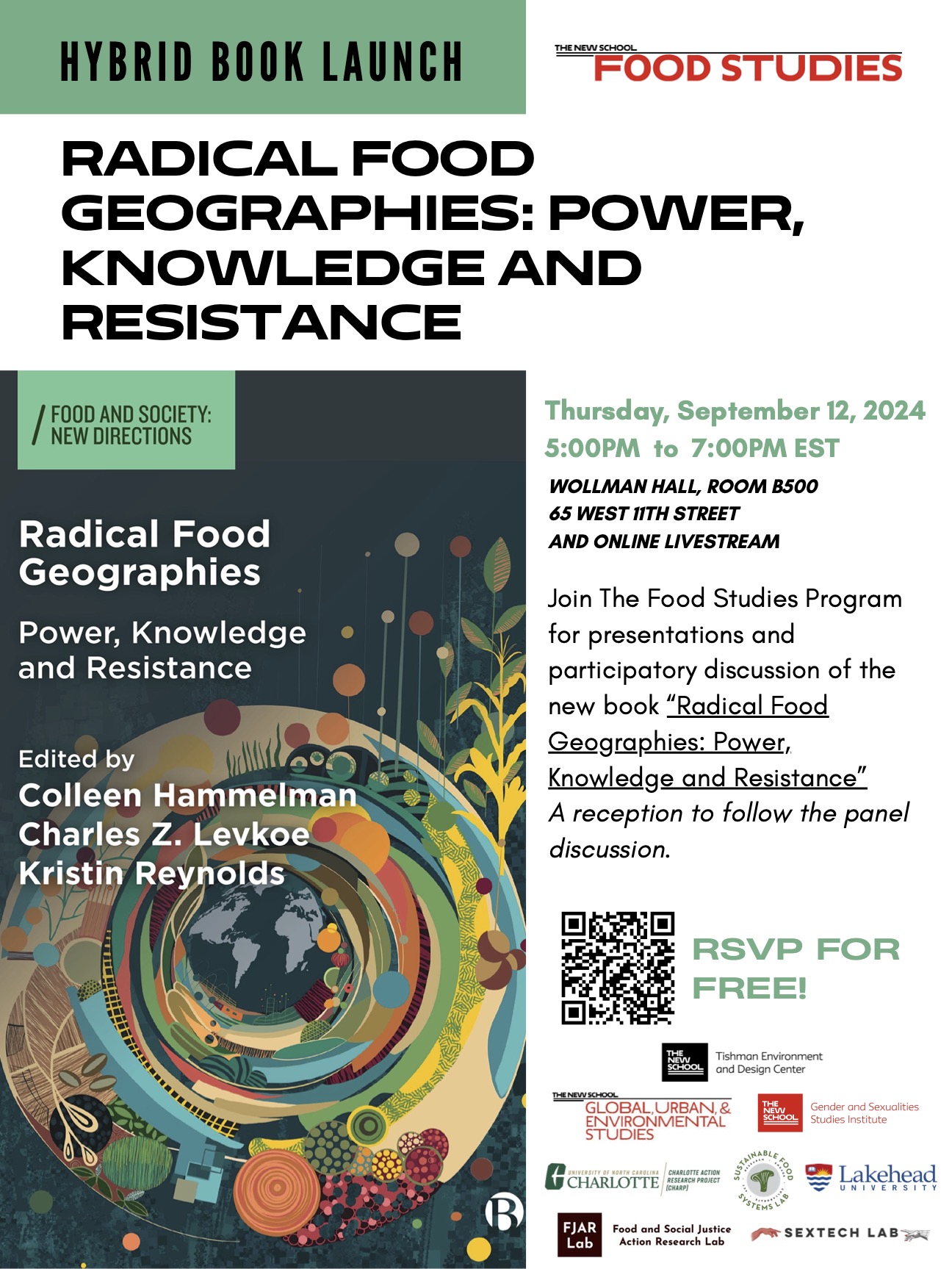 Join The Food Studies Program at The New School for presentations and participatory discussion of the new book “Radical Food Geographies: Power, Knowledge and Resistance” (2024 Bristol University Press)! This collection, co-edited by Colleen Hammelman, Charles Z. Levkoe, and (Food Studies Program Chair) Kristin Reynolds, presents critical and action-oriented approaches to addressing food systems inequities across places, spaces, and scales from around the world.