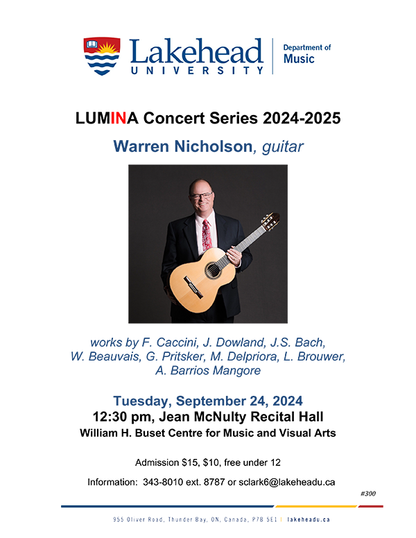 On Tuesday, Sept. 24, guitarist Warren Nicholson performs works by F. Caccini, J. Dowland, J.S. Bach and more!