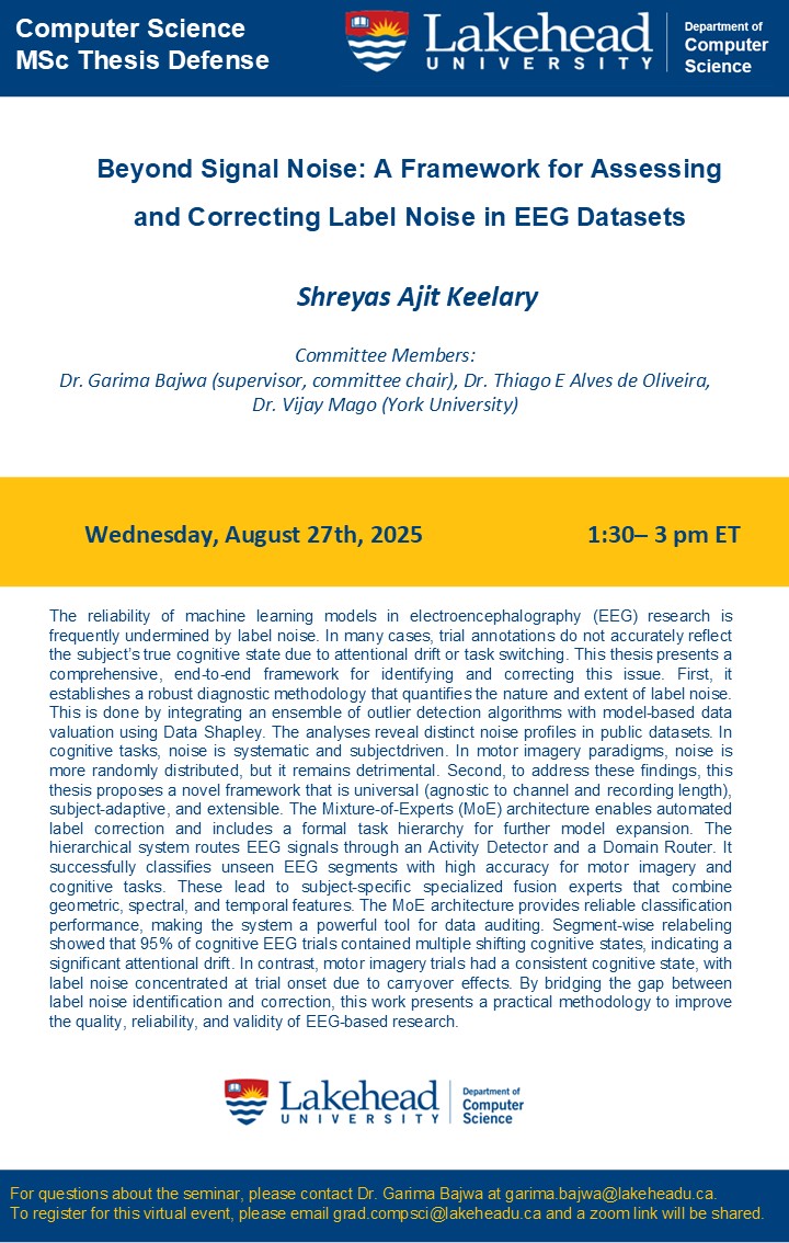 Please contact grad.compsci@lakeheadu.ca for the Zoom link. Everyone is welcome.