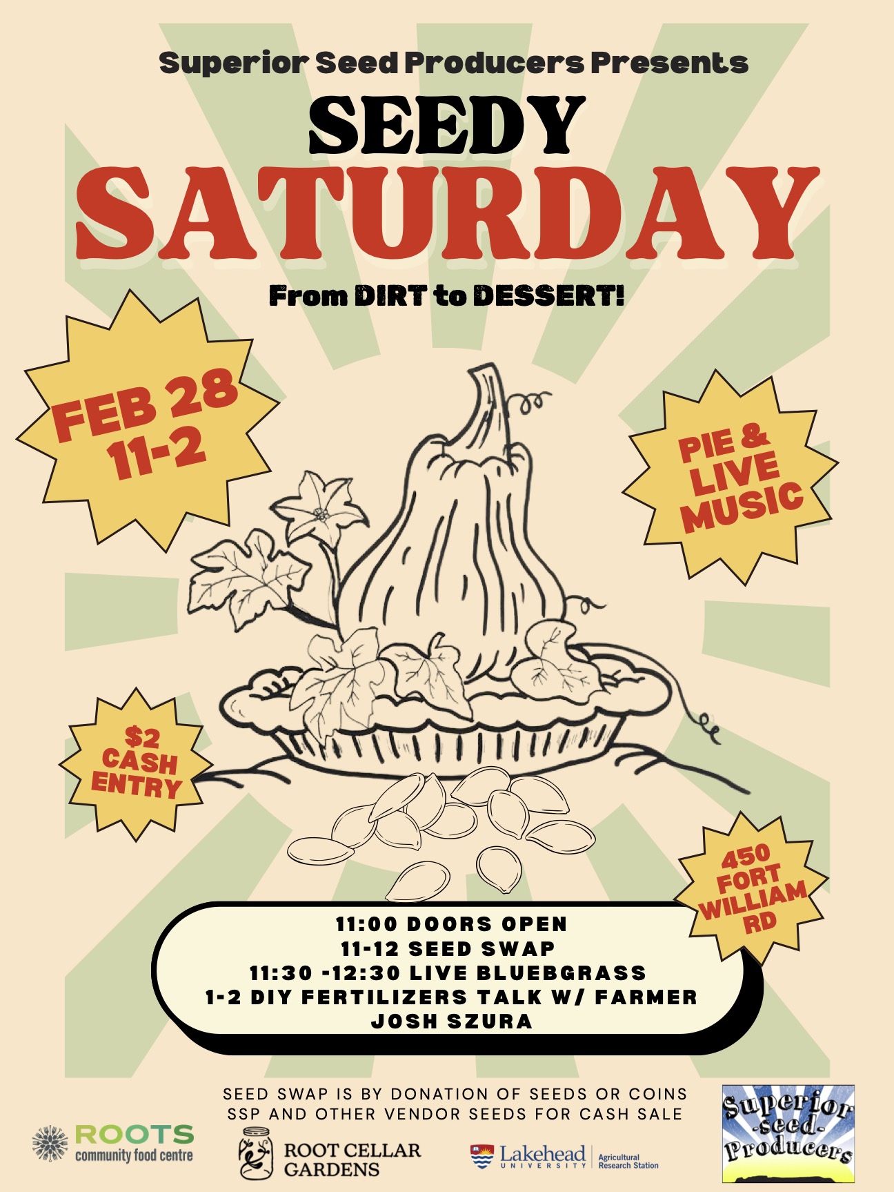 Live music from Pintail, seed swap and purchase, make-your-own-fertilizer workshop with farmer Josh Szura, vendors/exhibitors, squash tasting and more!