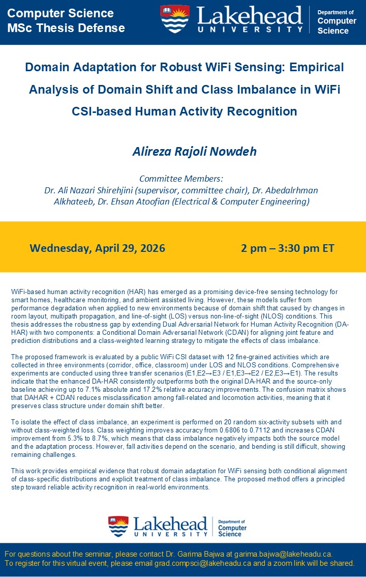 Please contact grad.compsci@lakeheadu.ca for the Zoom link. Everyone is welcome.