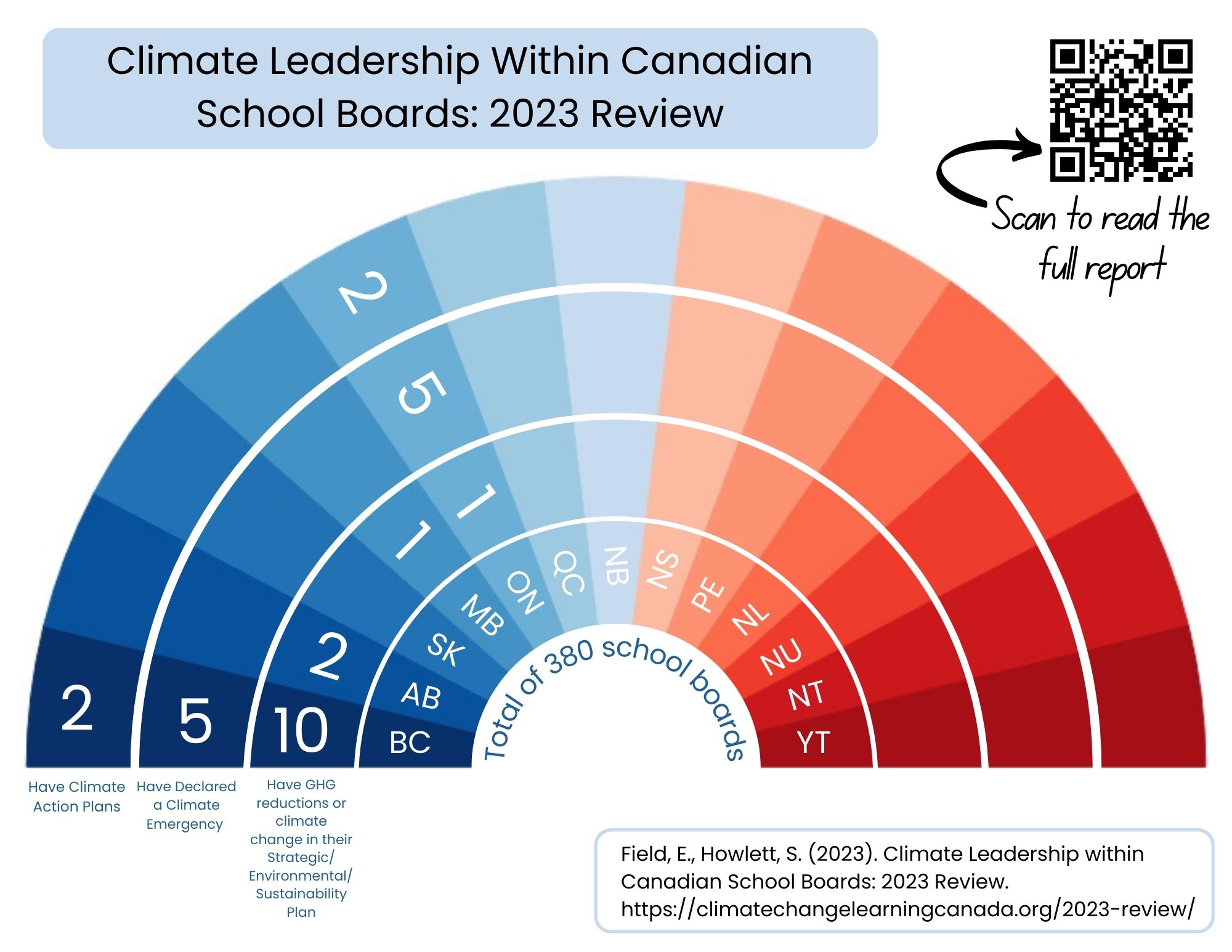 - Only four school boards in Canada had published Climate Action Plans: Toronto District School Board, Trillium Lakelands District School Board, Richmond School District, and Greater Victoria School District.
