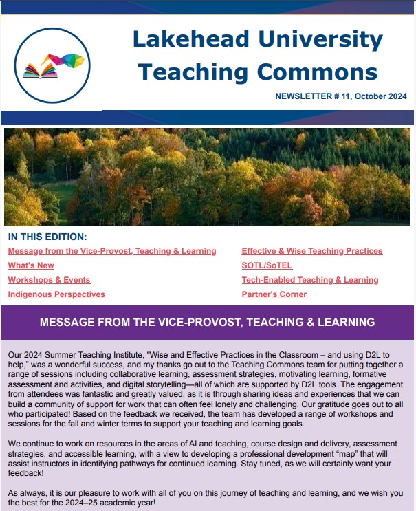 As we move through the fall term, the Teaching Commons remains focused on fostering creativity and engagement in the classroom. Our faculty and staff are committed to exploring new strategies to enhance student learning and collaboration. This season, we are highlighting innovative teaching practices that integrate technology, active learning, and inclusive pedagogies to create dynamic, supportive learning environments. Join us for workshops and resources designed to empower educators and enrich the student experience throughout the academic year.