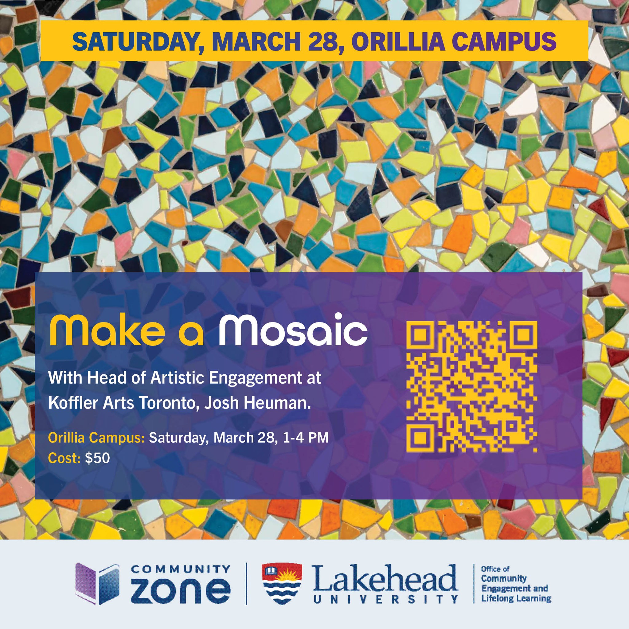 Mosaics are an art form that long predate our contemporary "pixelated" world. This four-hour session will begin with a short talk about remarkable mosaics from ancient to contemporary times and about the materials, tools and techniques. Then roll up your sleeves to make a stunning geometric or abstracted artwork with guidance from and assistance of the workshop leader. You will leave with a handcrafted memento to adorn your home and newfound skills to create more!