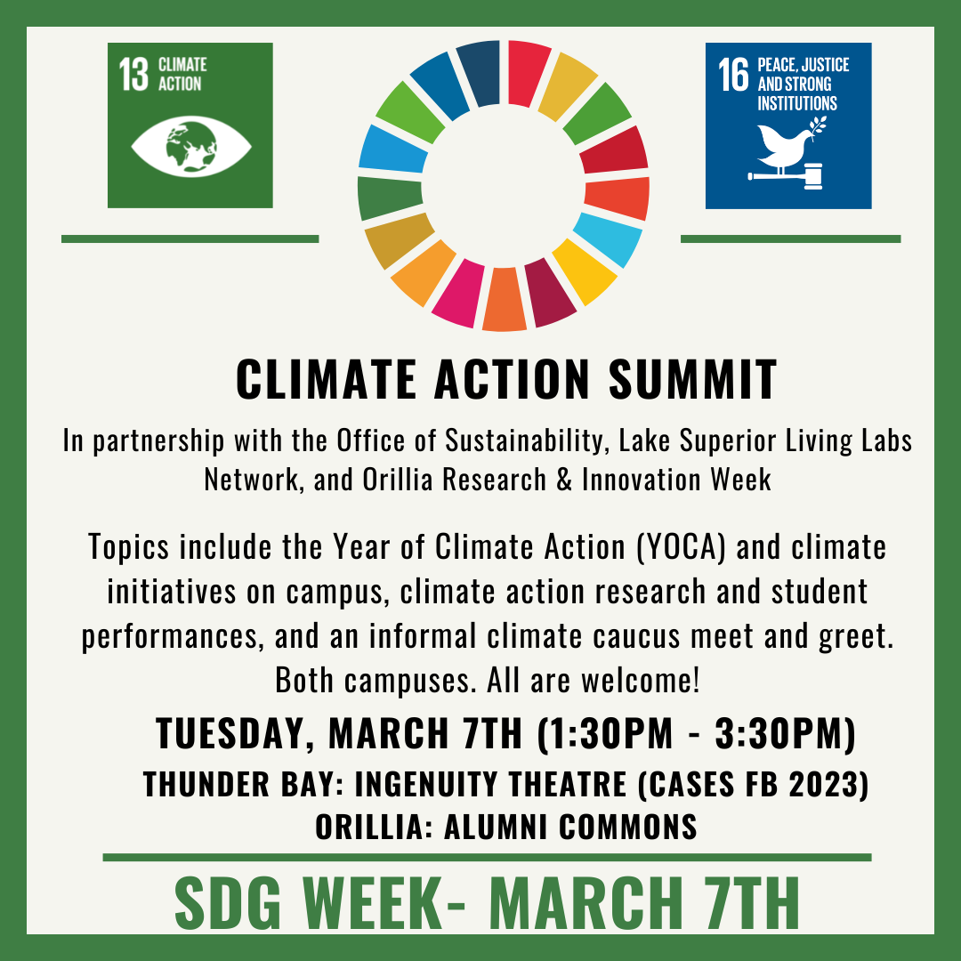 YOCA: Guide to Climate Change Research; Archives of the Environment; Climate Change Virtual Collection; Sustainability@Lakehead: Selected Publications at Lakehead University; and YOCA: Year of Climate Action Books for Children