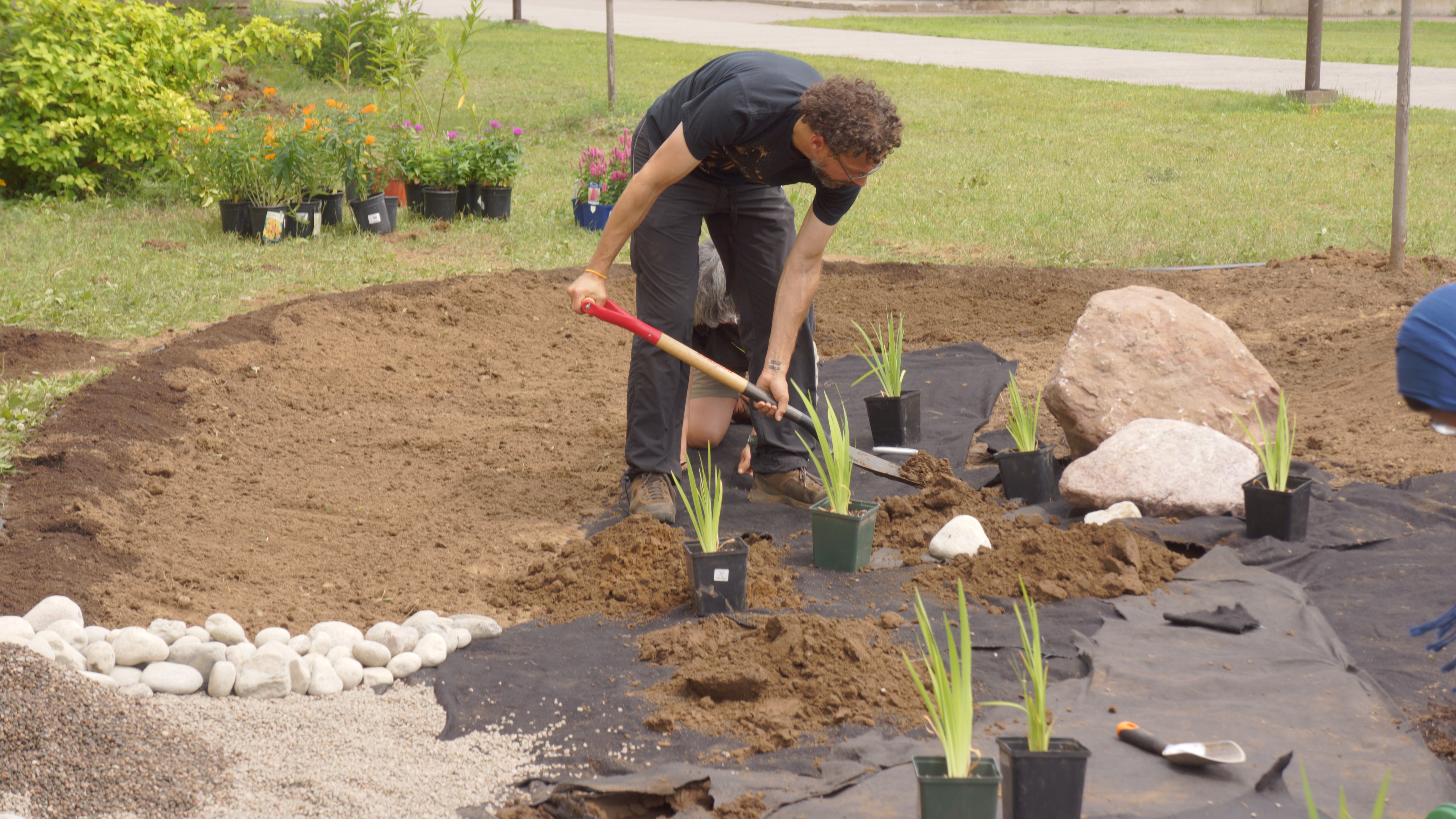 Many thanks to all our volunteers for their contributions to this project! Today we work on the finishing touches of the rain garden.