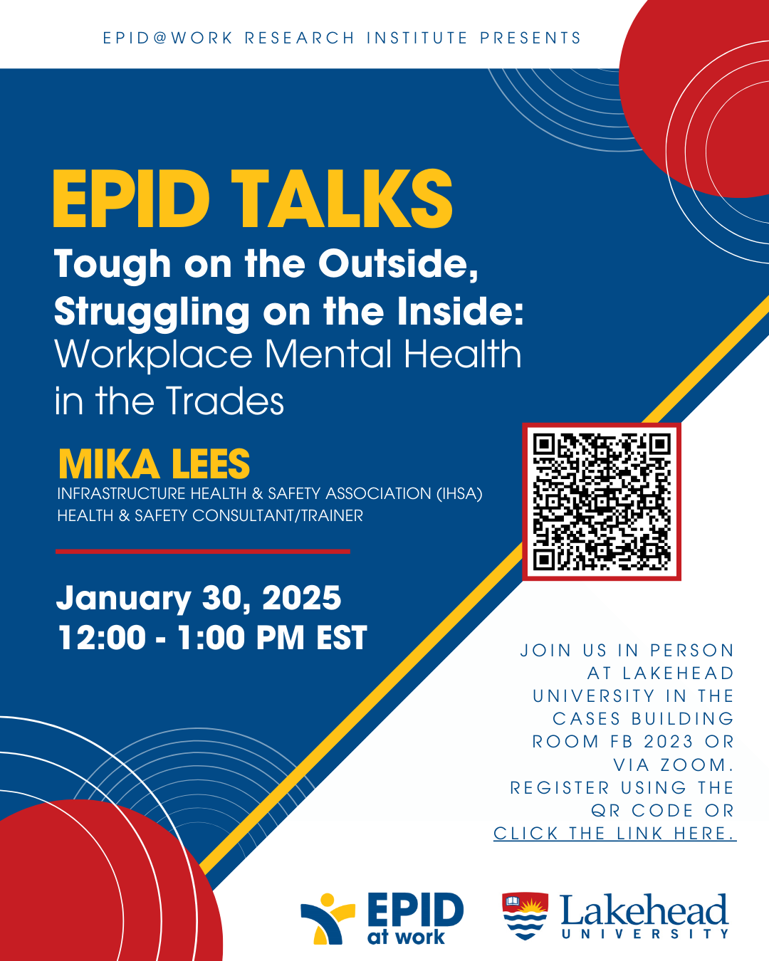 Please join us as we bring together researchers, community members, employers and workers to explore the importance of regional research and collaboration. Hosted by the EPID@Work Research Institute at Lakehead University, our Research Into Action Conference will include a keynote presentation from Dr. Arif Jetha, from the Institute of Work & Health. He will be discussing the new seven-year partnership project, The Partnership on AI and Quality of work (PAIQ). This project aims to study artificial intelligence (AI), job quality and worker wellbeing.