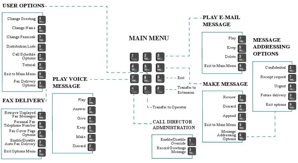 The following voice mail map demonstrates on how to navigate your voice mail system.