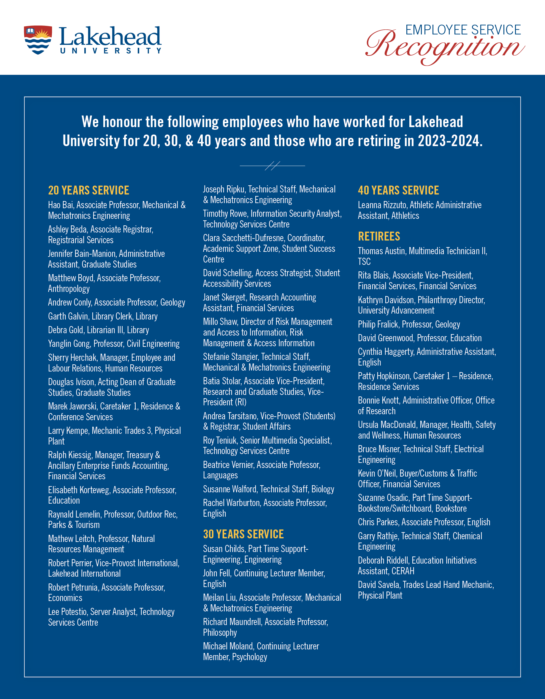 - Robert Perrier, Vice-Provost International, Lakehead International