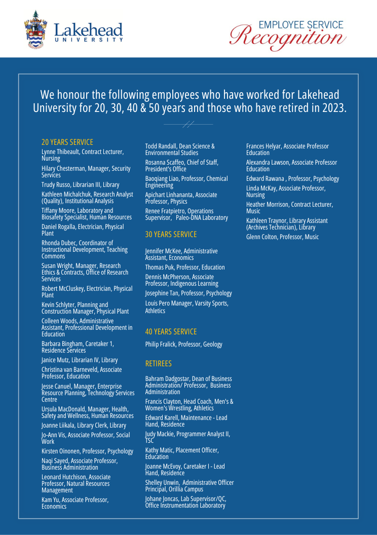- Lori Vidotto, Administrative Assistant, Kinesiology