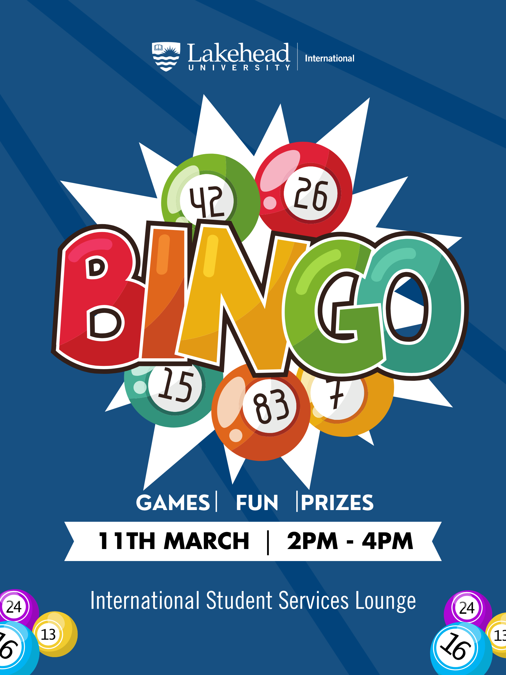 Join us for a fun-filled Bingo game at the International Centre! Play alongside friends, enjoy some friendly competition, and win exciting prizes. Whether you're a Bingo pro or a first-timer, everyone is welcome to take part in the excitement!