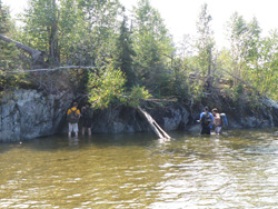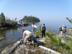 In August-September 2009 students from Lakehead and the University of Saskatchewan entering their final year of their undergraduate degree undertook a two week fieldschool. The students found themselves working in areas of PGE mineralisation near Marathon, Archean volcanic rocks near Beardmore, and Midcontinent Rift related rocks south of Thunder Bay. The following photos are some of the highlights.