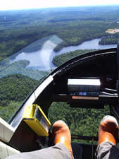 Marc Rinne spent the summer of 2008 working in Northern Ontarion. Fieldwork in northern Ontario often involves using a helicopter to access the outcrops. These two photos were taken by Marc Rinne during his summer work with MetalCORP in the Marathon area |