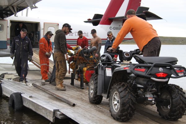 Manouvering a replacement motor off the Twin Otter. |