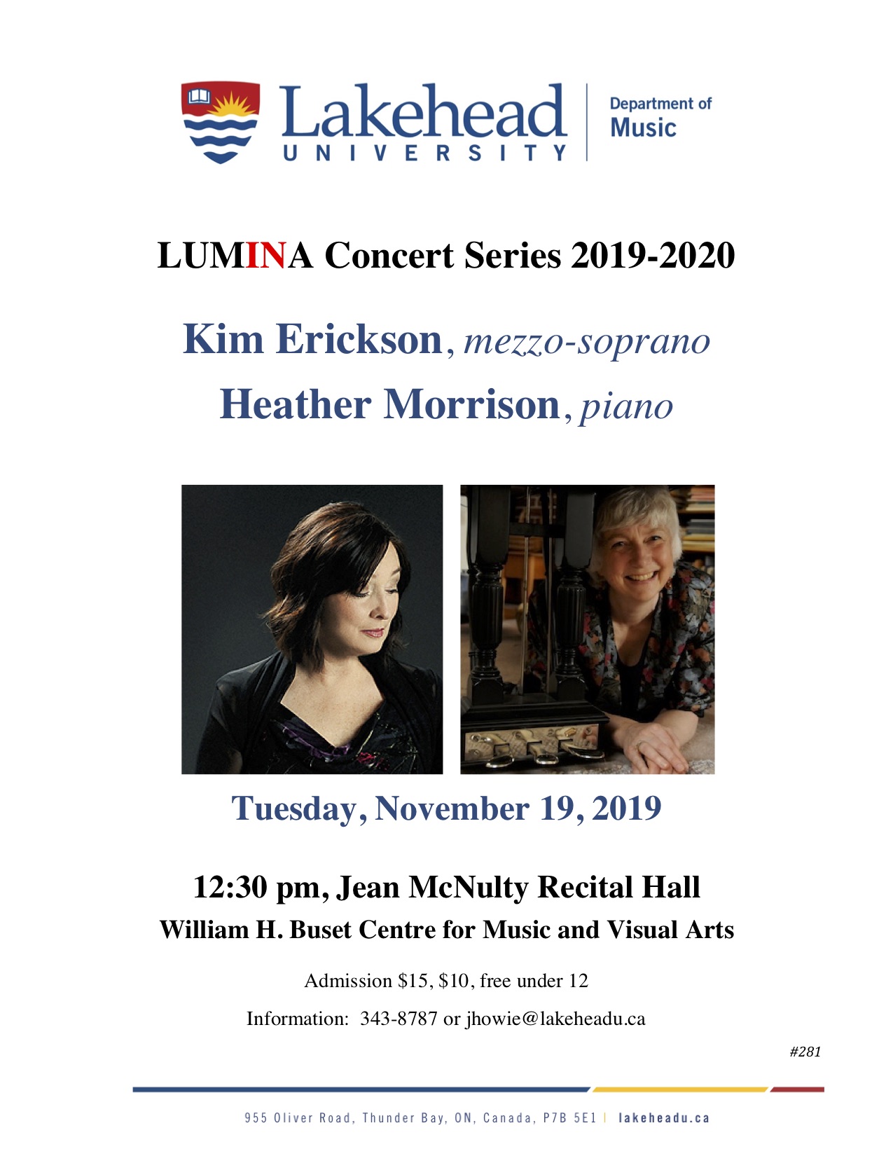 Information: 343-8010 ext. 8787 or jhowie@lakeheadu.ca