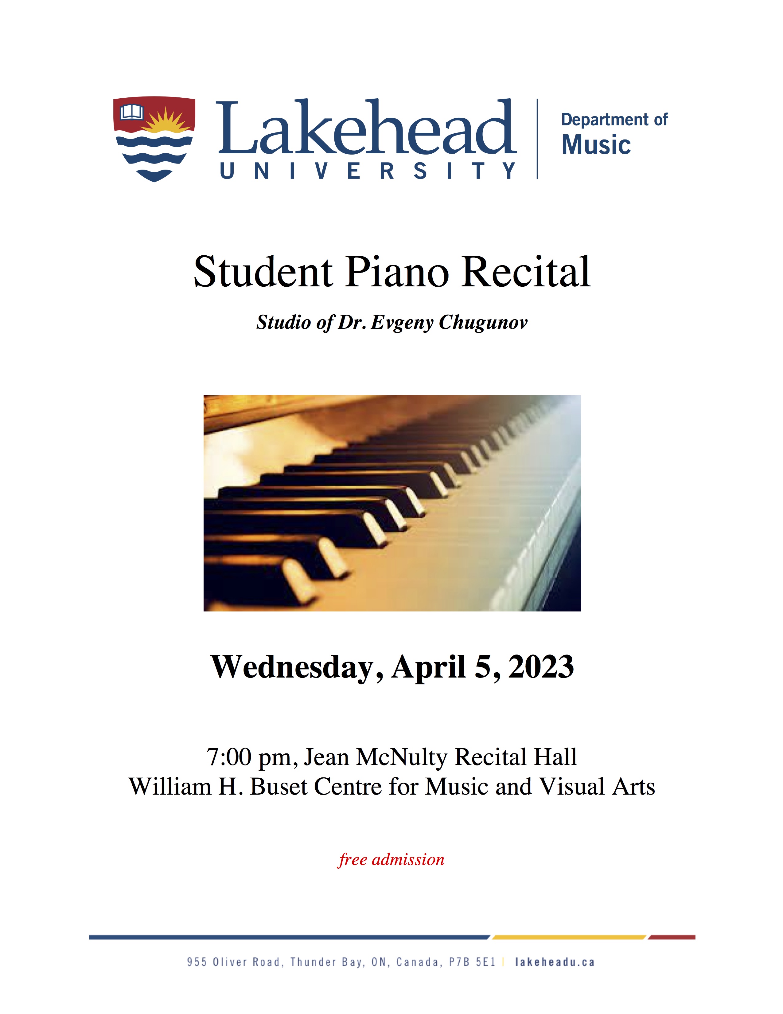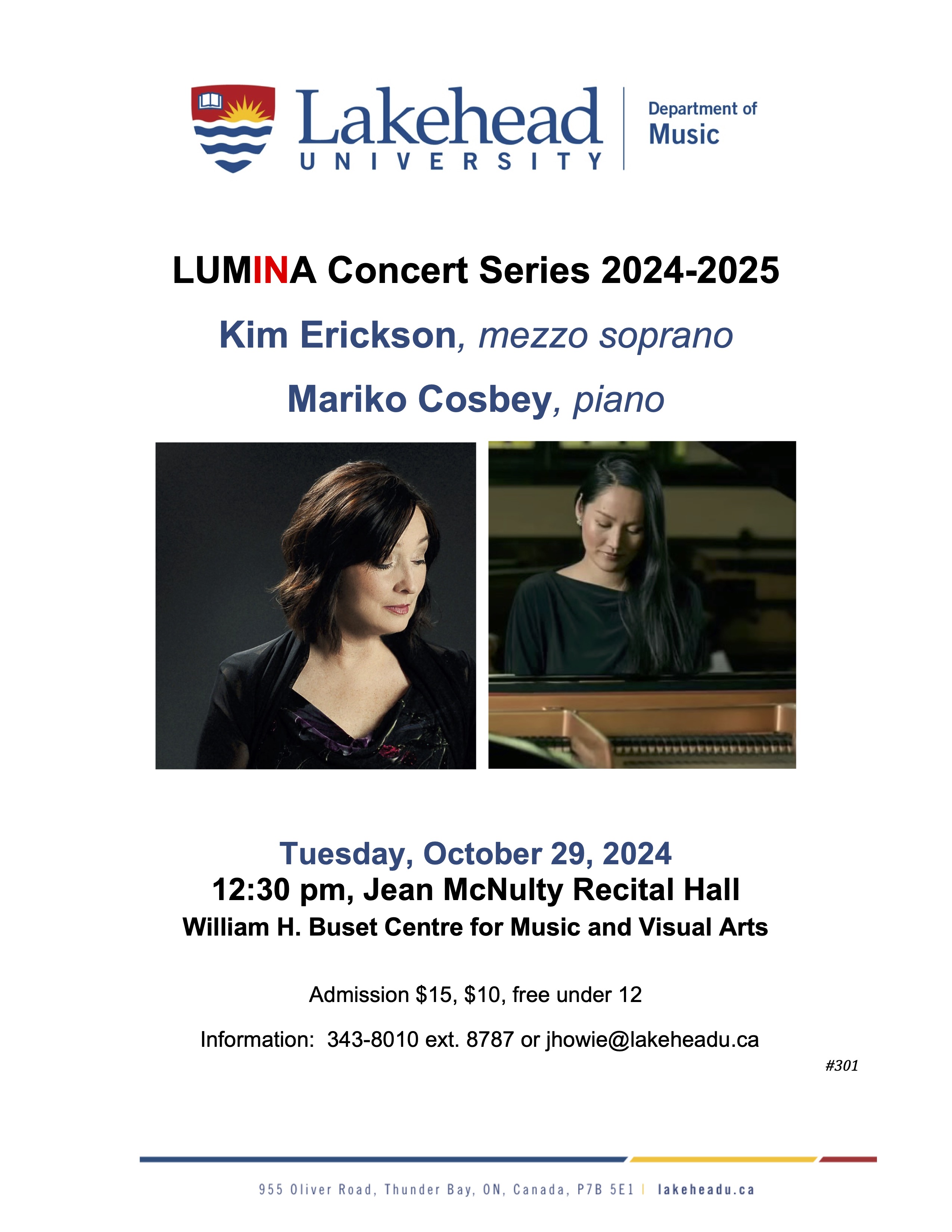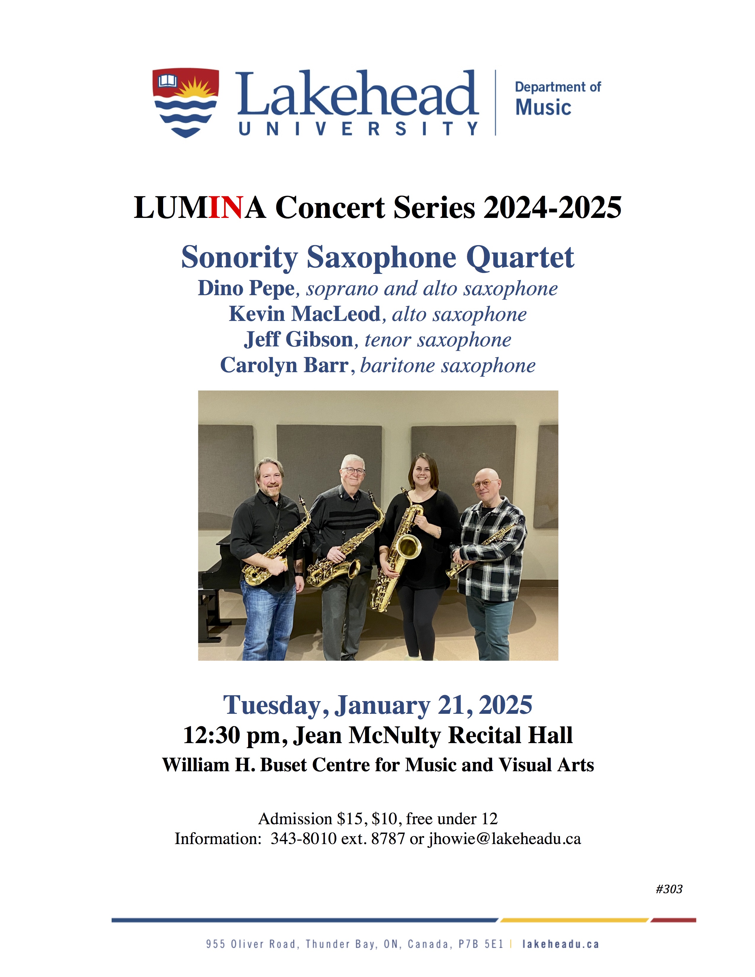 Information: 343-8010 ext. 8787 or jhowie@lakeheadu.ca