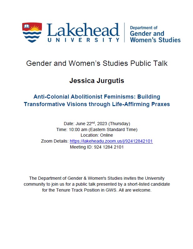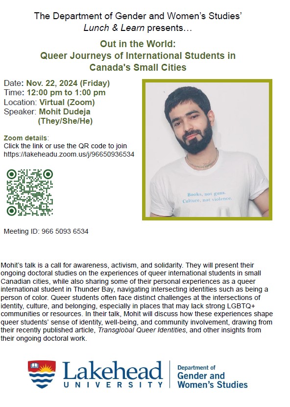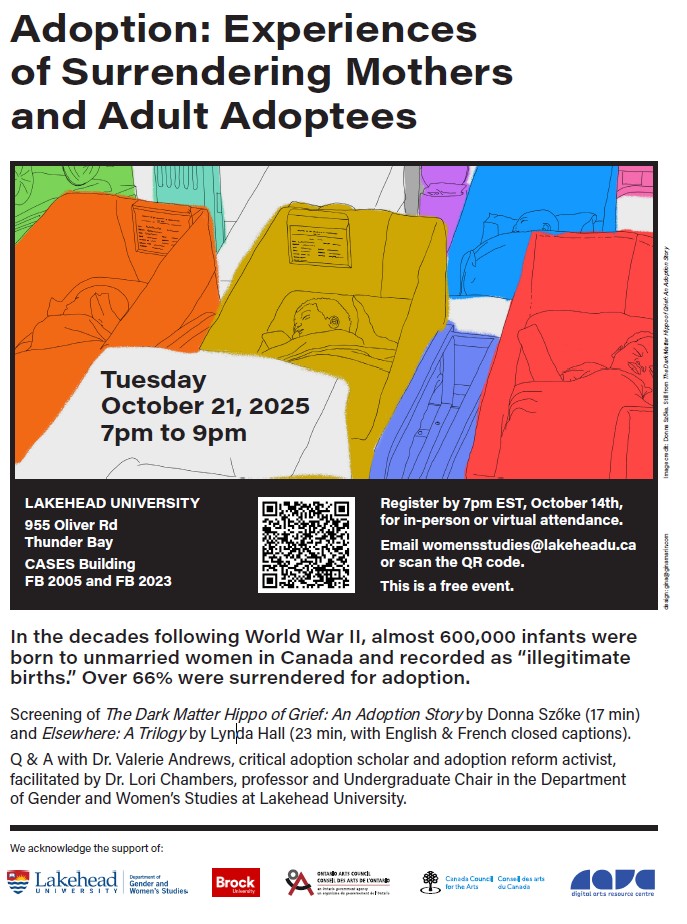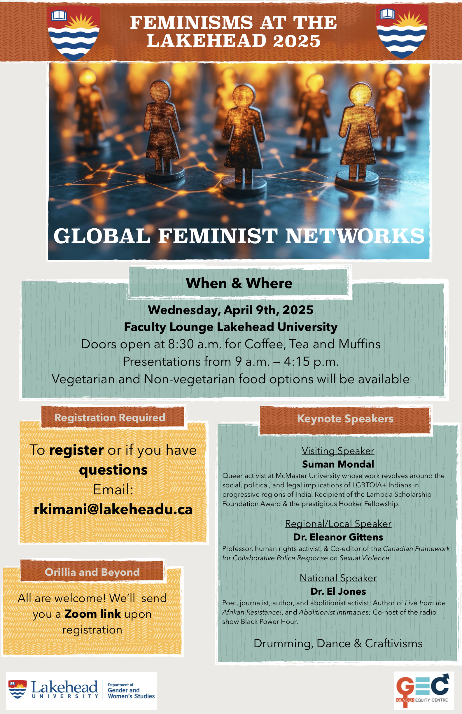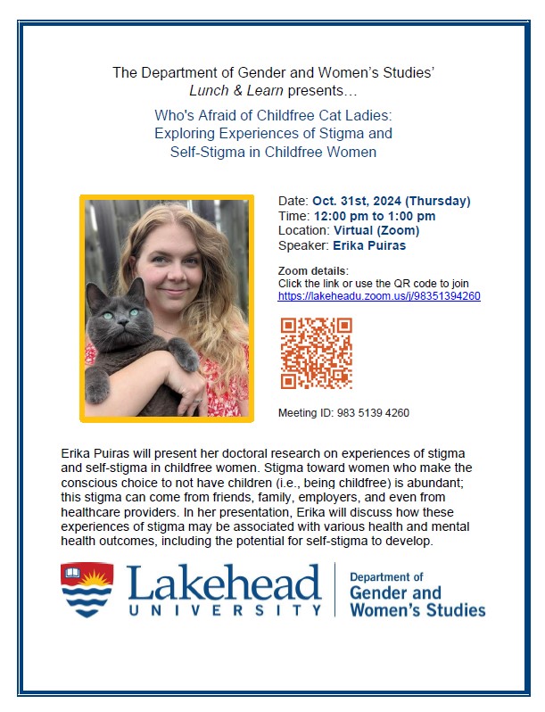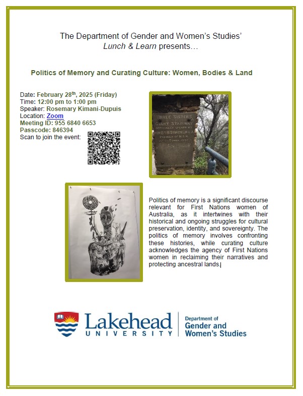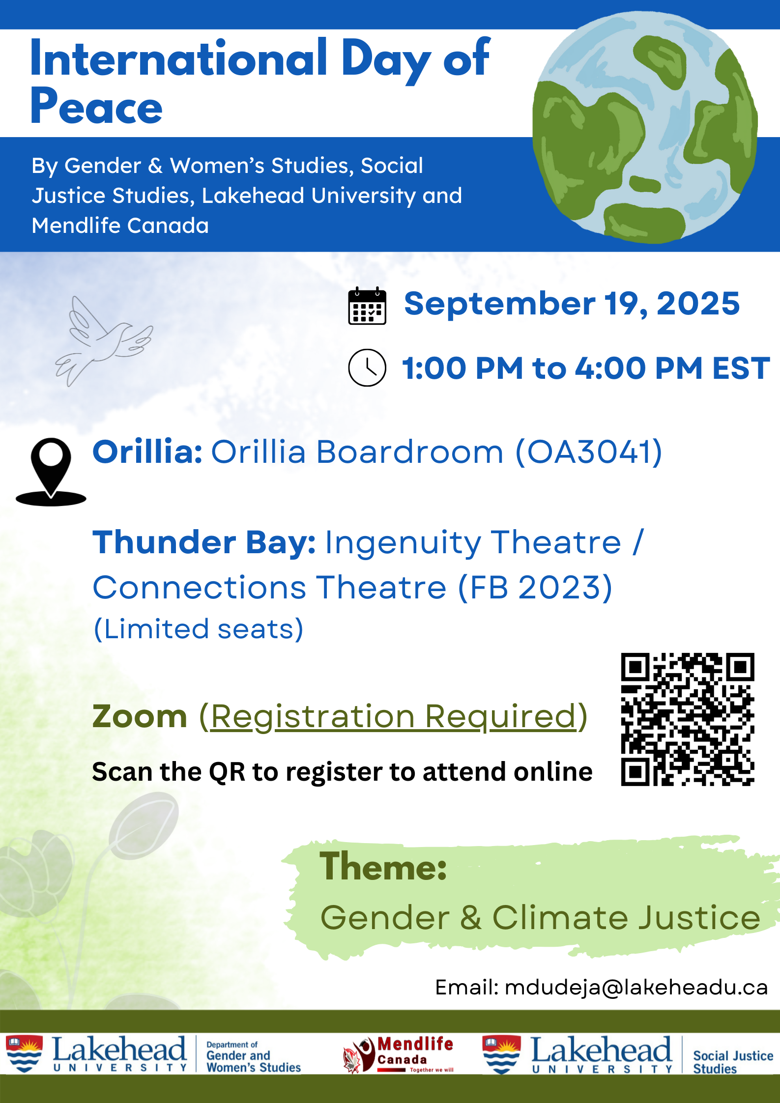 *Register by 7pm EST, October 14th, 2025 for in-person or virtual attendance. To register for the in-person attendance, please email Elaine at WomensStudies@lakeheadu.ca. To register for the virtual attendance, please scan the QR code on the poster.