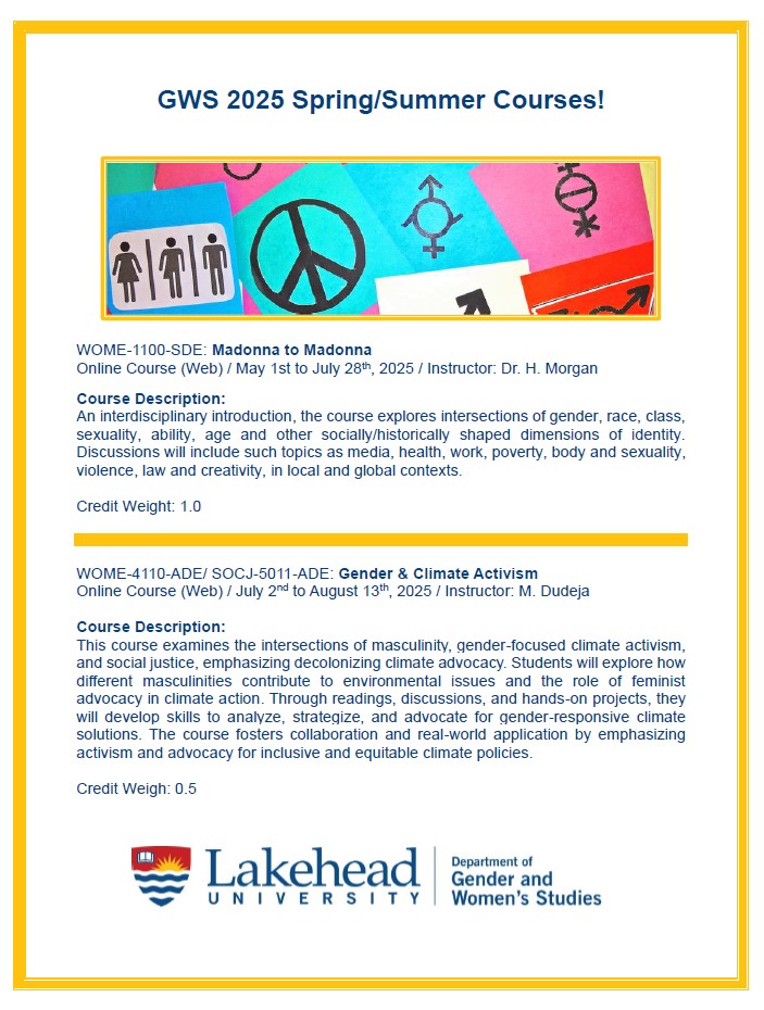 WOME-1100-SDE: Madonna to Madonna Online Course (Web) / May 1st to July 28th, 2025 / Instructor: Dr. H. Morgan