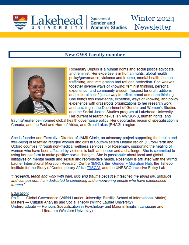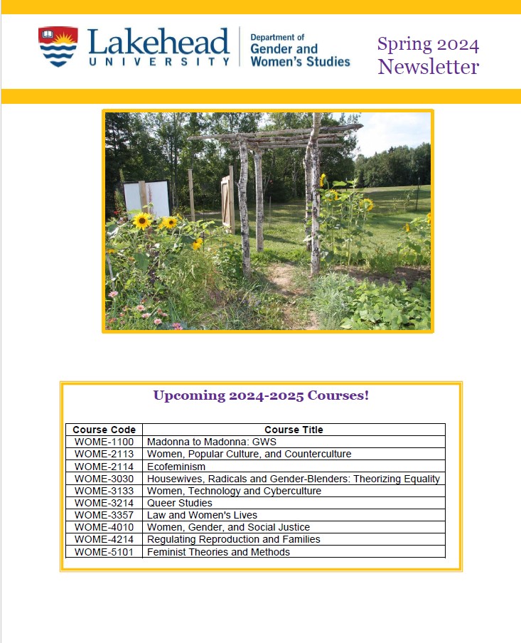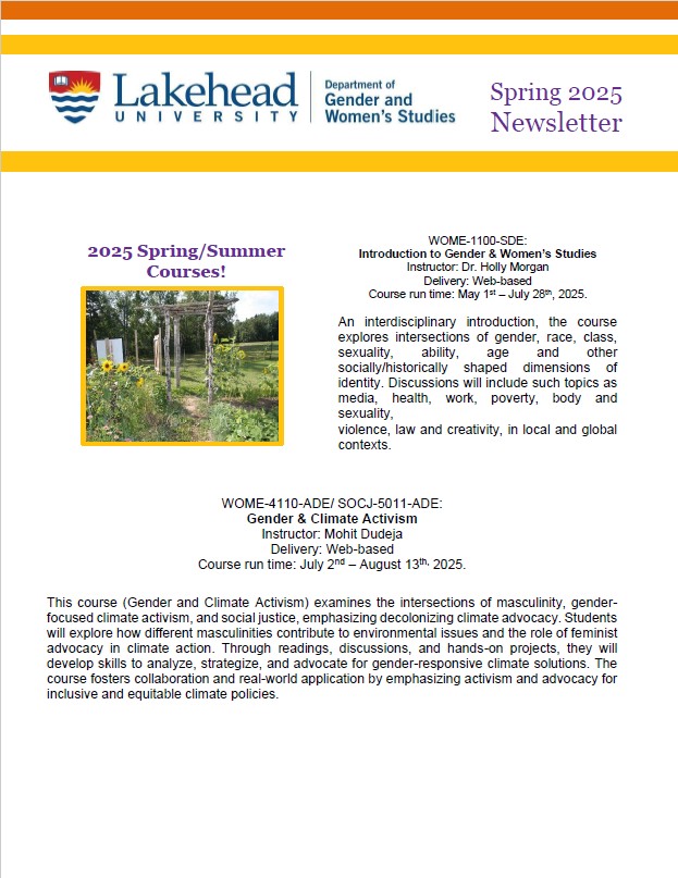 Gender and Women’s StudiesLakehead University955 Oliver RoadThunder Bay, Ontario, P7B 5E1CanadaVisiting AddressRyan Building, RB 3022Lakehead University