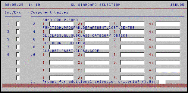 Field 11: Prompt for additional selection criteria? (Y,N): [INPUT] N