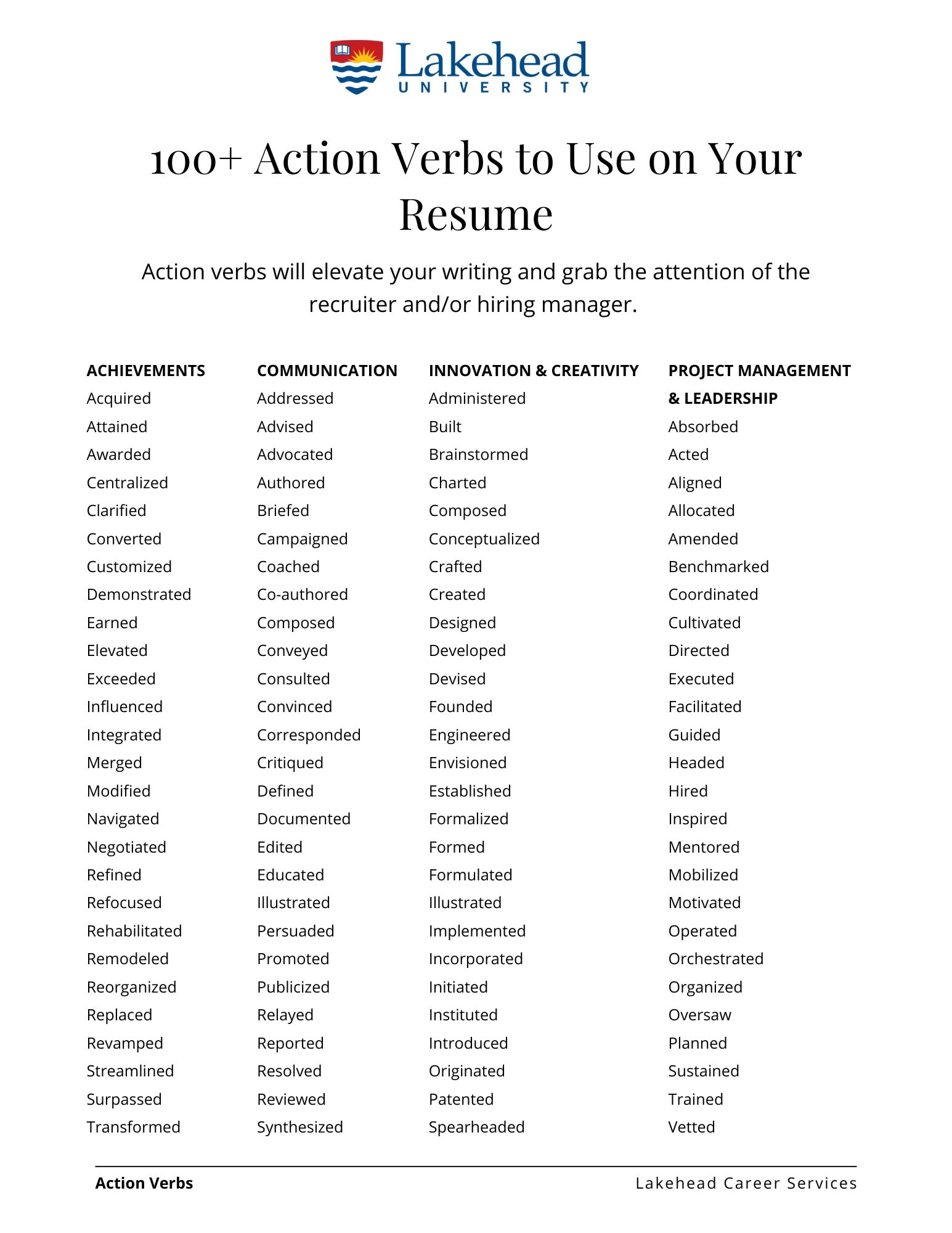 Action Verbs for Resumes - Expand your list of action verbs to include within your cover letter and resume.