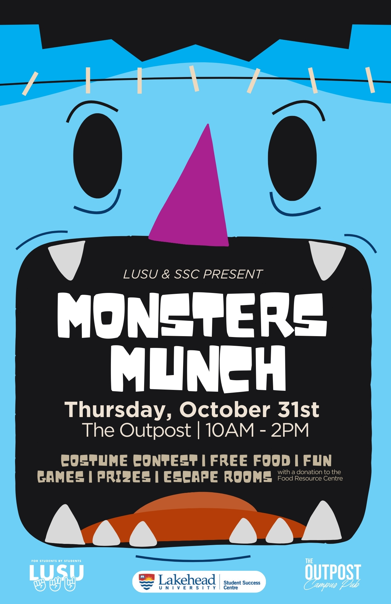 Join us for Monsters Munch at the Outpost on October 31st from 10 AM to 2 PM! Dress up in your creepiest costumes and enjoy a hauntingly good time with our costume contest, where you could win terrifyingly awesome prizes. Play games and solve puzzles to unleash a feast of fang-tastic food like poutines, tacos, and falafels courtesy of the Outpost—all for FREE when you join the fun!
