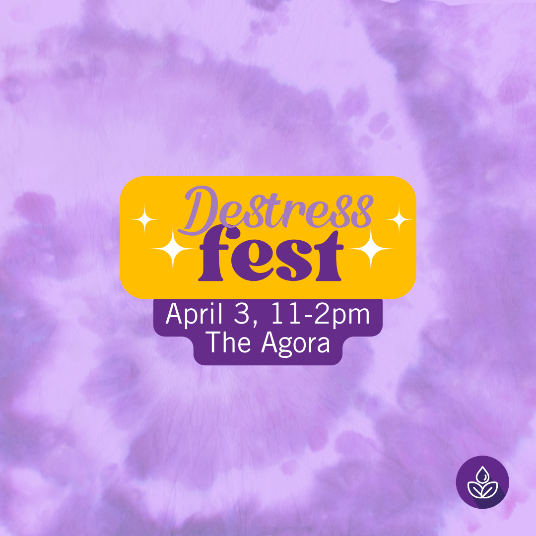 Beat the end-of-semester slump at De-Stress Fest! Stop by the Agora to take a break with different stress-busting activities, a warm beverage and remind yourself of healthy coping strategies and the services and supports available to you!