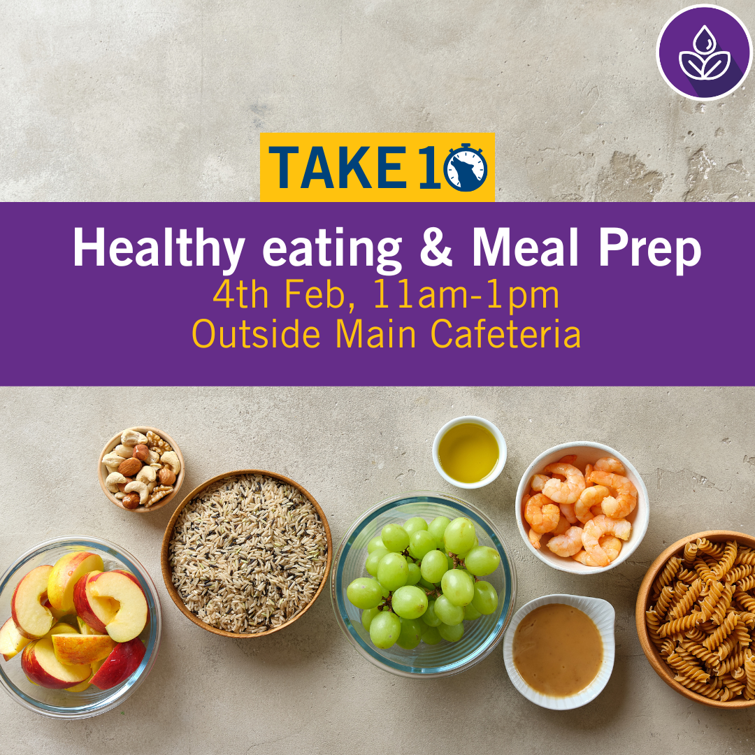 Swing by our Take 10 drop-in table on Wednesday, February 4, from 11 am–1 pm during Eating Disorder Awareness Week. We’ll be chatting about simple, realistic ways to approach healthy eating and meal prep—no rules, no pressure. Grab a few tips, explore helpful resources, and take a quick pause to fuel yourself in a way that feels good for you.