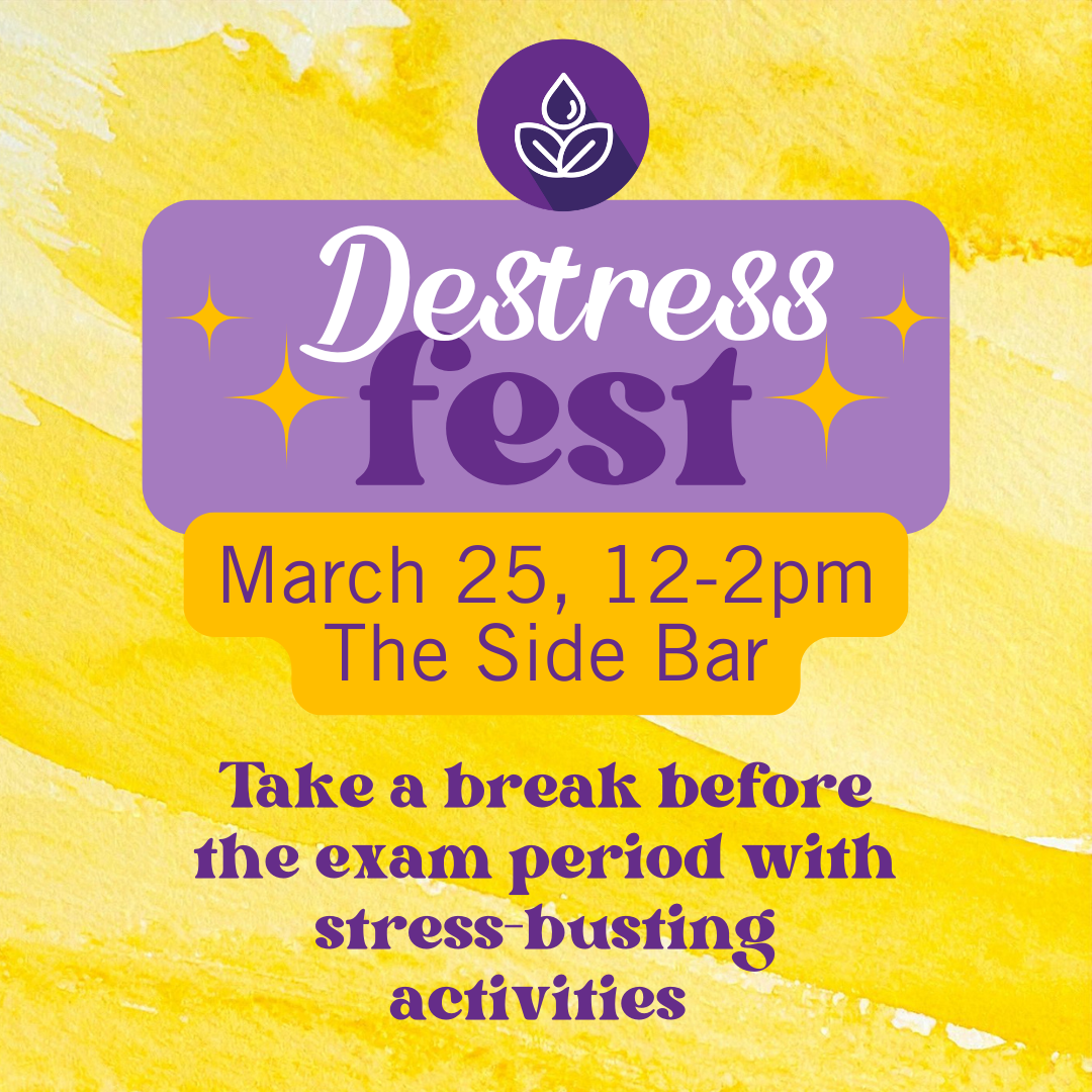 Take a well-deserved break before exams at De-Stress Fest! Hosted by Student Health and Wellness, this event is all about helping you recharge with fun and relaxing activities. Drop for a free coffee, unwind, connect, and take a moment for yourself before the busy exam season.