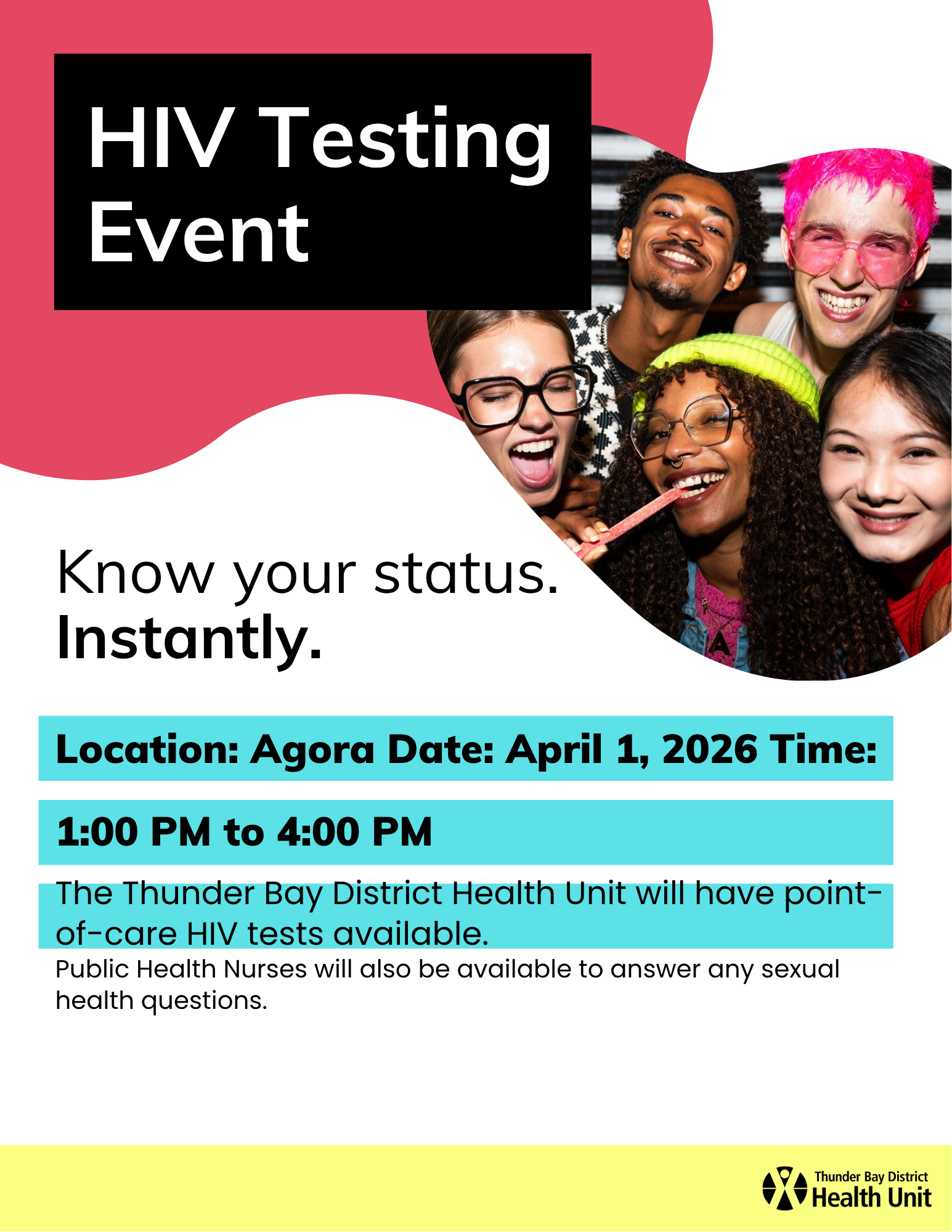 Drop-in HIV Testing will be available on campus with the Thunder Bay District Health Unit.
