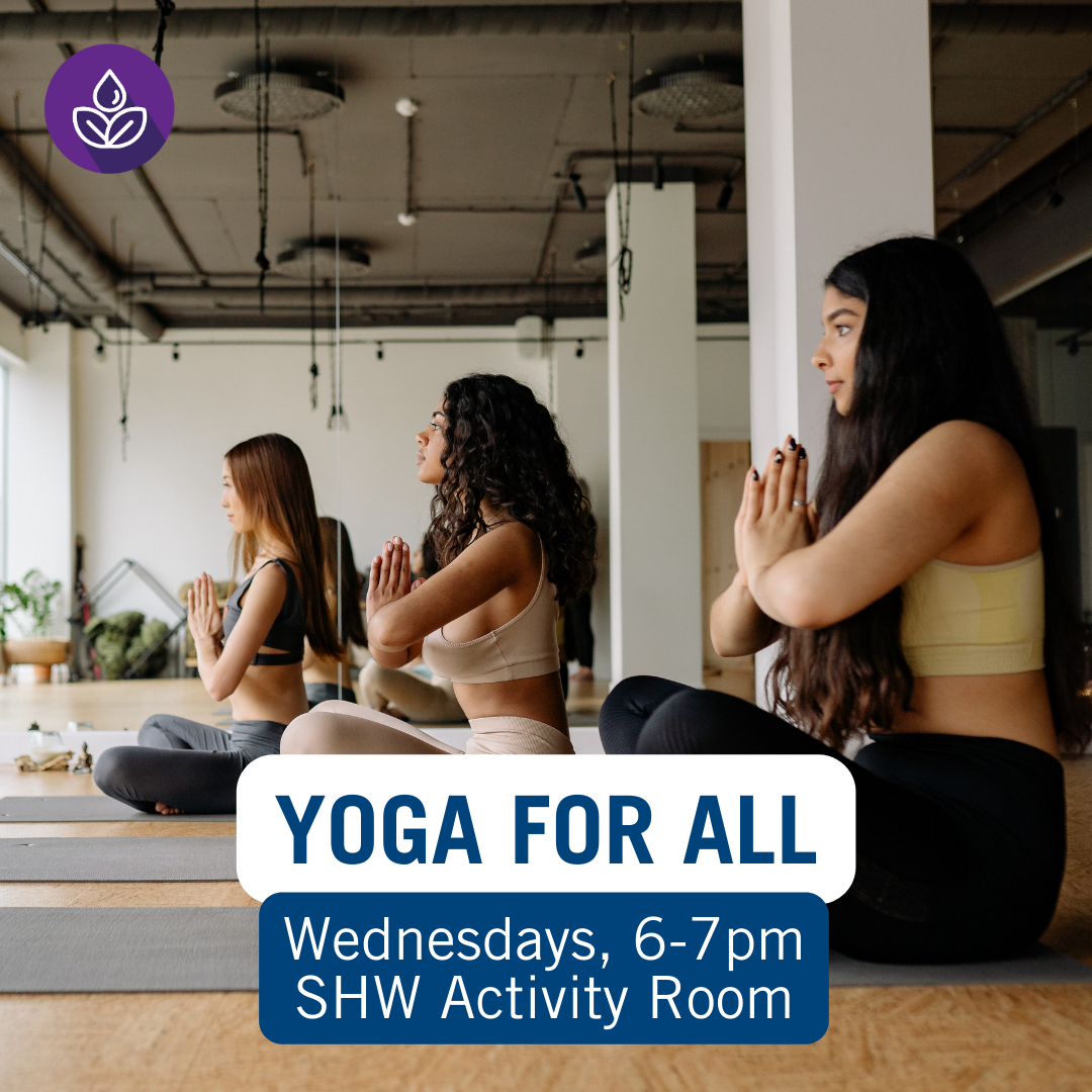 Join instructor Ameena for sun salutations and downward-facing dogs in the Student Health and Wellness Activity Room.