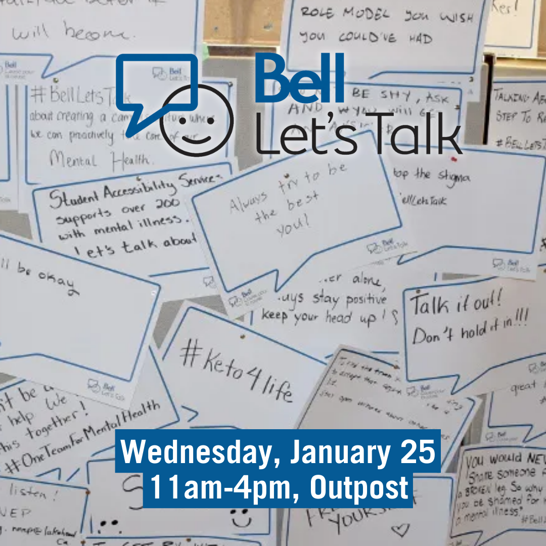 Join the conversation by sharing your mental health message, picking up some Bell Let's talk swag and taking time to connect with fellow Thunderwolves.