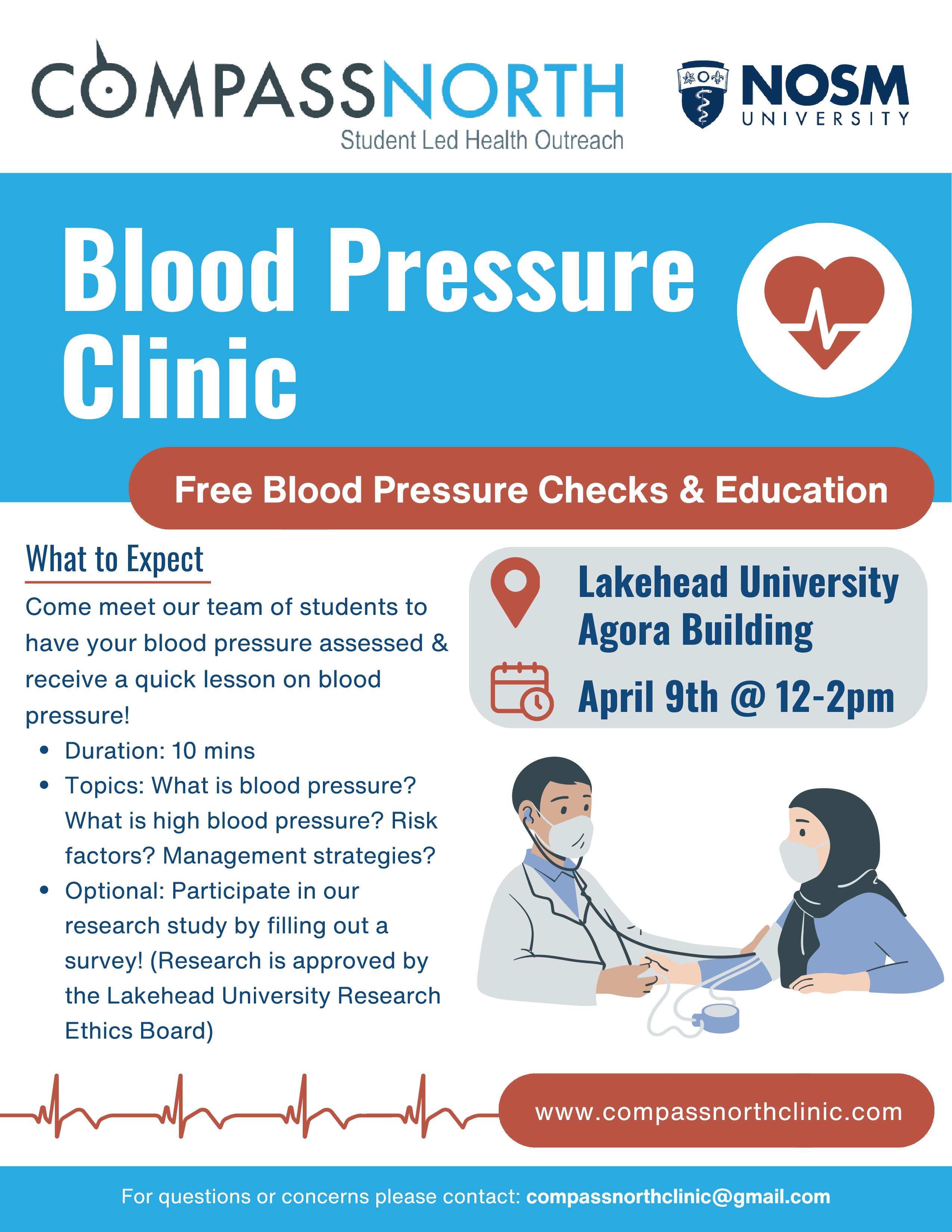Come meet our team of students from Compass North and NOSM to have your blood pressure assessed & receive a quick lesson on blood pressure!