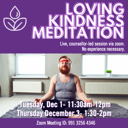 Our most important relationship is the one we have with ourselves. Celebrate Student Health and Wellness' Love Week by joining counsellor, Holly Maki, for a guided love and kindness meditation.