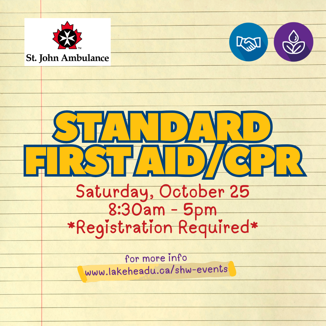 **This event has been cancelled due to insufficient registration. If you are interested in participating in first aid training in the future, please contact orluwell@lakeheadu.ca to express your interest.**