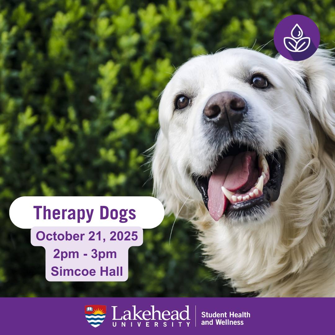 The cutest kind of stress relief is back on campus! Visit the St. John Ambulance Therapy Dogs in Simcoe Hall from 2pm - 3pm.