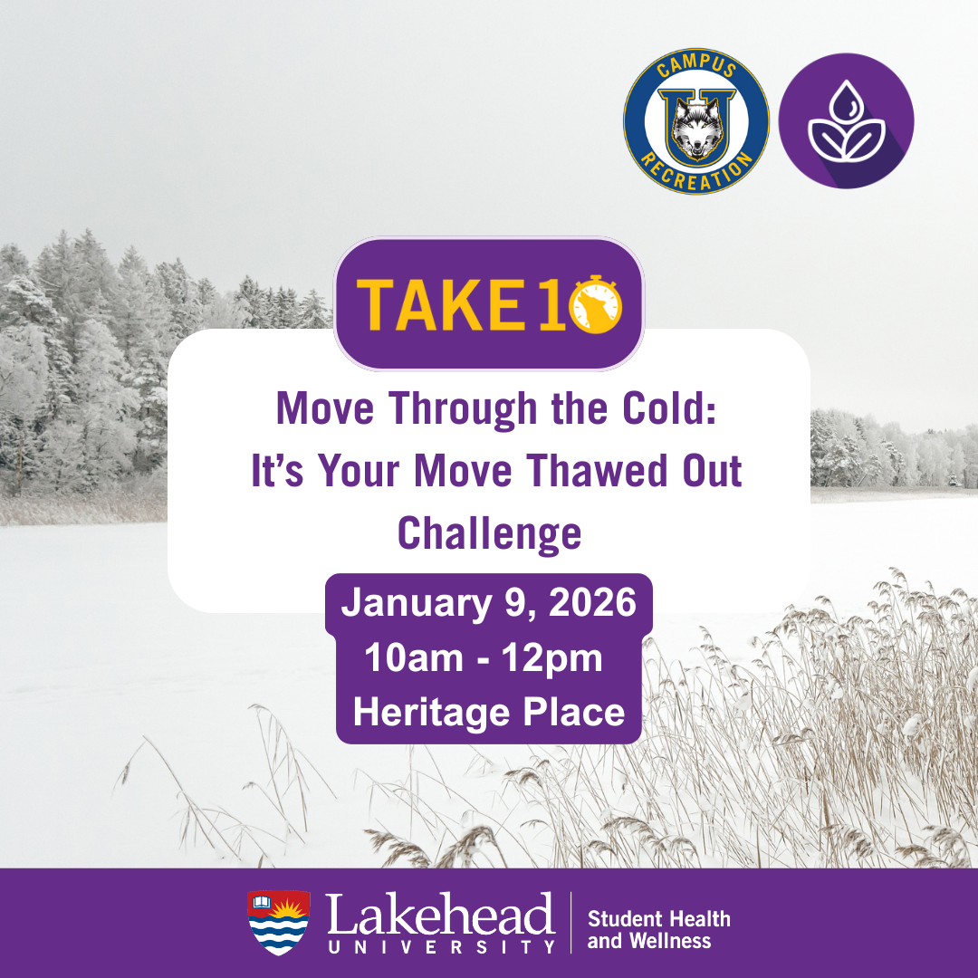 The Thaw Out Challenge is open to current students, incoming students, staff, faculty, and alumni from both campuses. Students who complete the challenge will get some Lakehead swag.