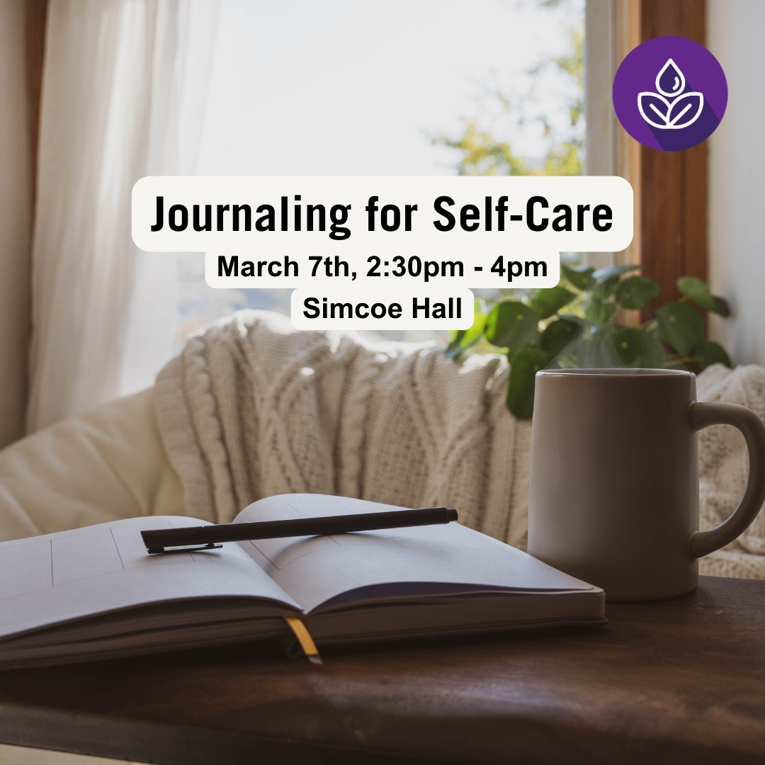 Stop by Simcoe Hall to pick up a journaling kit and learn how journaling can be a part of your self-care routine! Each kit includes a journal, writing tools and an intro guide to journaling as self-care.