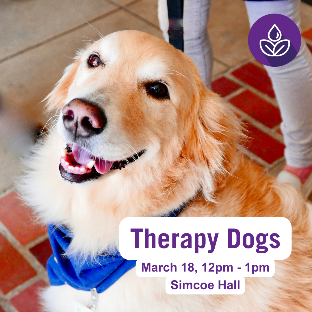 The cutest kind of stress relief is back! Visit the St. John Ambulance Therapy Dogs at Simcoe Hall from 12pm - 1pm