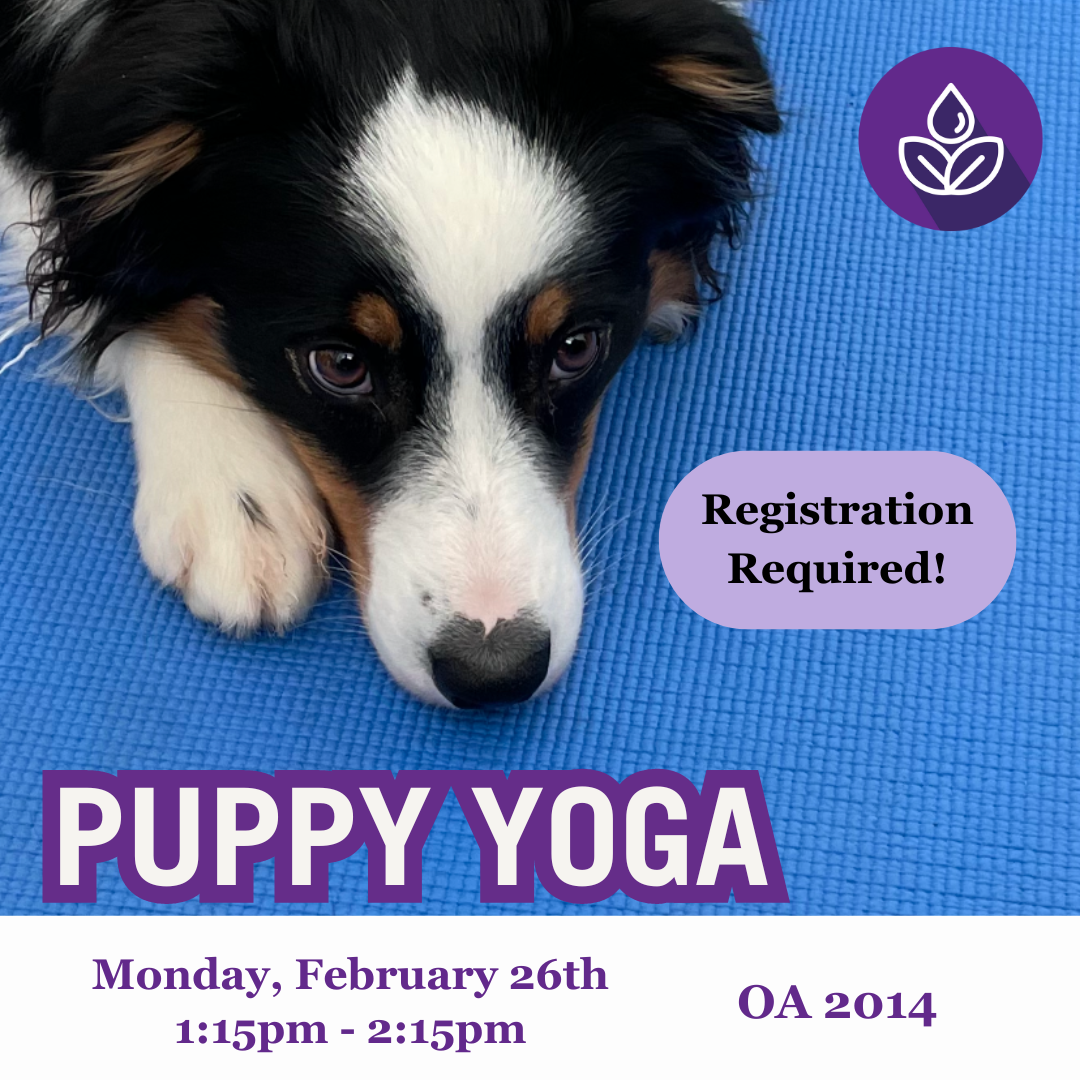 Join our puppy friends from Precious Paws Rescue for some downward dogs and warrior poses. Registration required. https://docs.google.com/forms/d/e/1FAIpQLScy7-C9UFfA5bIfvMPJivGx8_caeX1firsN0PwGy0cmQI3Drw/viewform?usp=sf_link