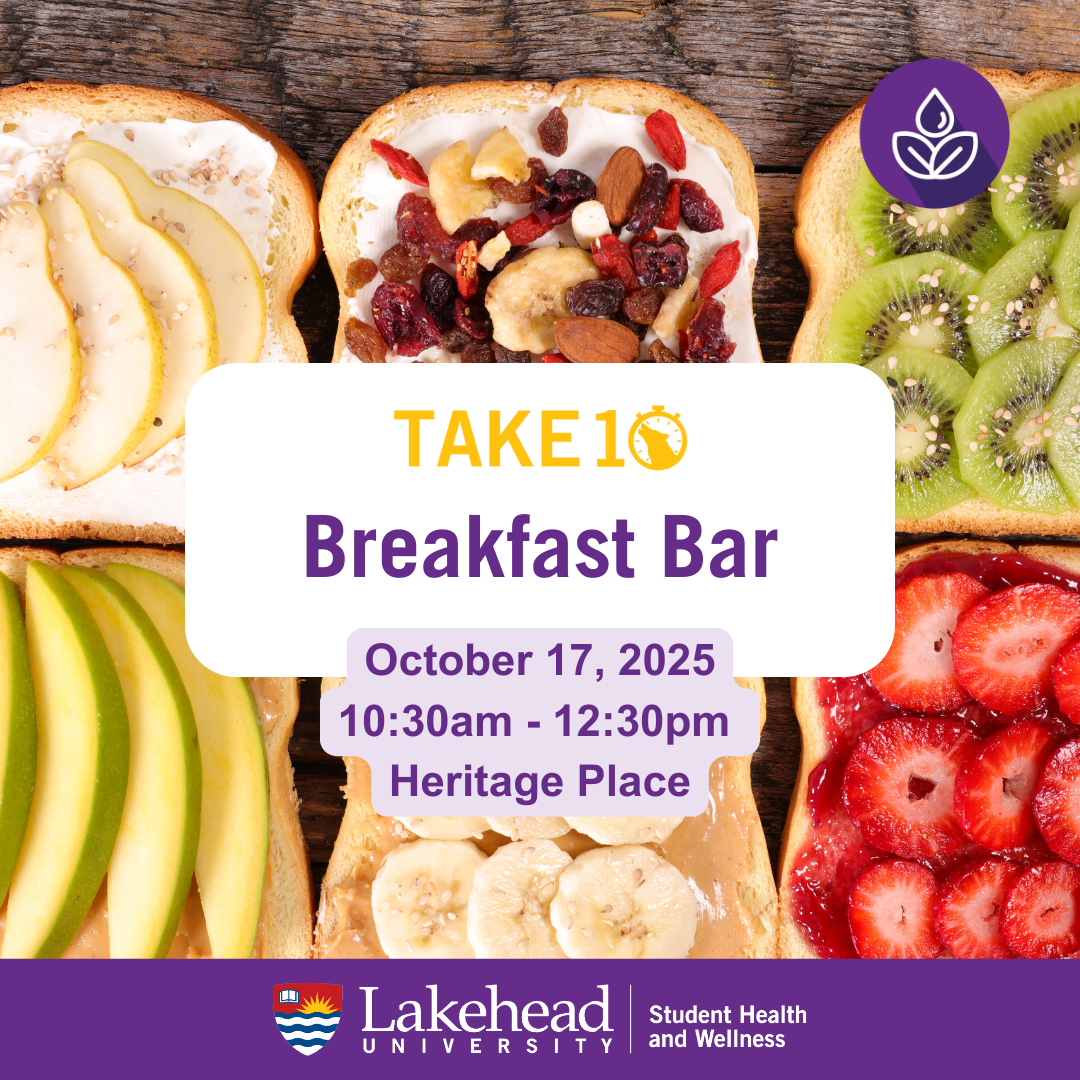 Need some fuel to start your day? You're invited to Breakfast Bar! Happening every Thursday from 9 am - 11 am, drop by to make your own breakfast, learn some low-cost and nutritious breakfast recipes and cost-saving strategies, and connect with peers. We will occasionally have special guests present to share information about timely topics. Breakfast will include toast and yogurt, both with a variety of toppings that will rotate each week. On occasion, we'll also have special feature items for you to try!