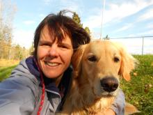 Dr. Leigh Potvin standing beside a Norwegian reindeer